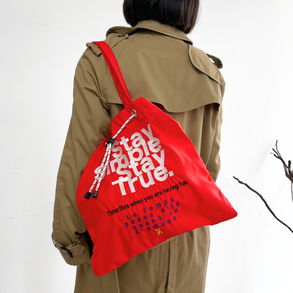 POPな刺繍を施したナイロン素材の2wayトート◎
