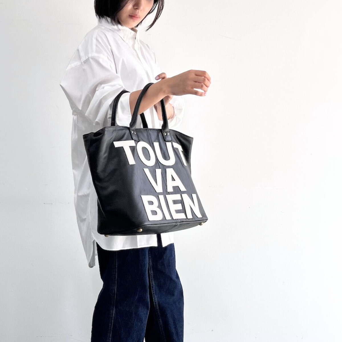 レザー素材のロゴ刺繍トートバッグ◎