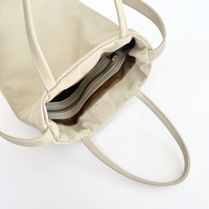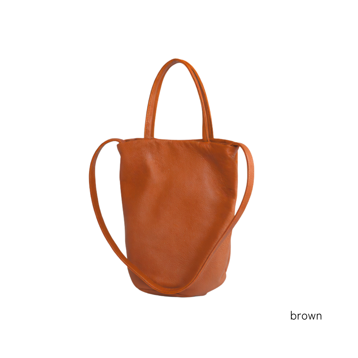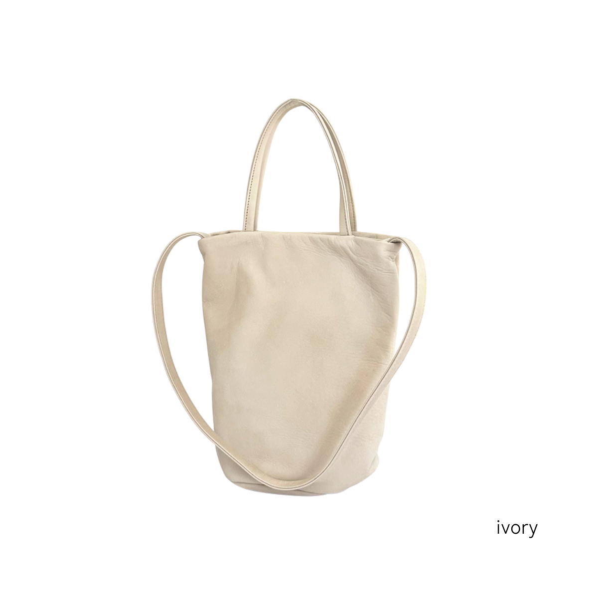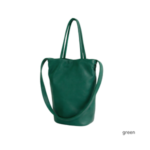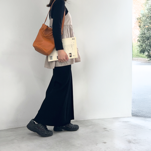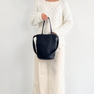 手に持ったり肩掛けで持ったりと、シーンに合わせて使い分けできます。マチが丸く、バケツのような可愛いフォルムです。