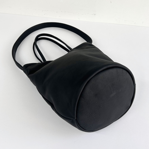 ウォータープルーフレザーを使用した、バケツ型のトートバッグ。防水性があり、体に馴染むような持ちやすさが特徴のレザーです◎